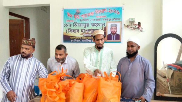 মাদারীপুর পৌরসভার ৫ নং ওয়ার্ডে অসহায়দের মাঝে ঈদ ফুড প্যাকেজ বিতরণ