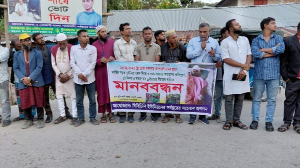 লিটন কুমার ঢালী, বেতাগী: বরগুনা জেলার বেতাগী উপজেলার পুটিয়াখালী বাজারে আজ বৃহস্পতিবার (২০/১১/২৫) বিকাল ৪টায় সড়ক দুর্ঘটনায় নিহত ও আহতদের ন্যায়বিচার, ক্ষতিপূরণের দাবিতে এক মানববন্ধন অনুষ্ঠিত হয়েছে। স্থানীয় বিভিন্ন শ্রেণিপেশার