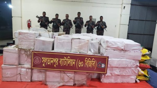 মো.রাসেল মিয়া,( ব্রাহ্মণবাড়িয়া) প্রতিনিধি: ব্রাহ্মণবাড়িয়ার কসবা সীমান্ত এলাকায় বিশেষ অভিযান চালিয়ে বিপুল পরিমাণ ভারতীয় ওষুধ ও কসমেটিকস সামগ্রী জব্দ করেছে বর্ডার গার্ড বাংলাদেশ (বিজিবি)। উদ্ধারকৃত এসব অবৈধ পণ্যের আনুমানিক বাজারমূল্য আরো পড়ুন...