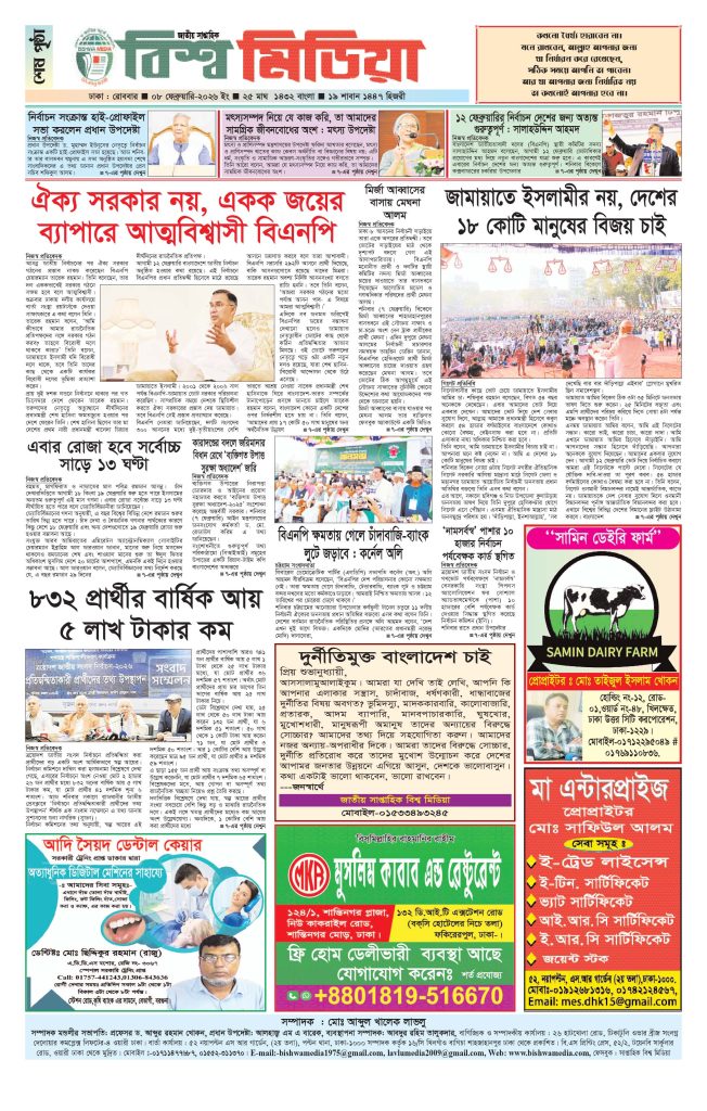 আপলোডের সময় : রবিবার, ৮ ফেব্রুয়ারী, ২০২৬