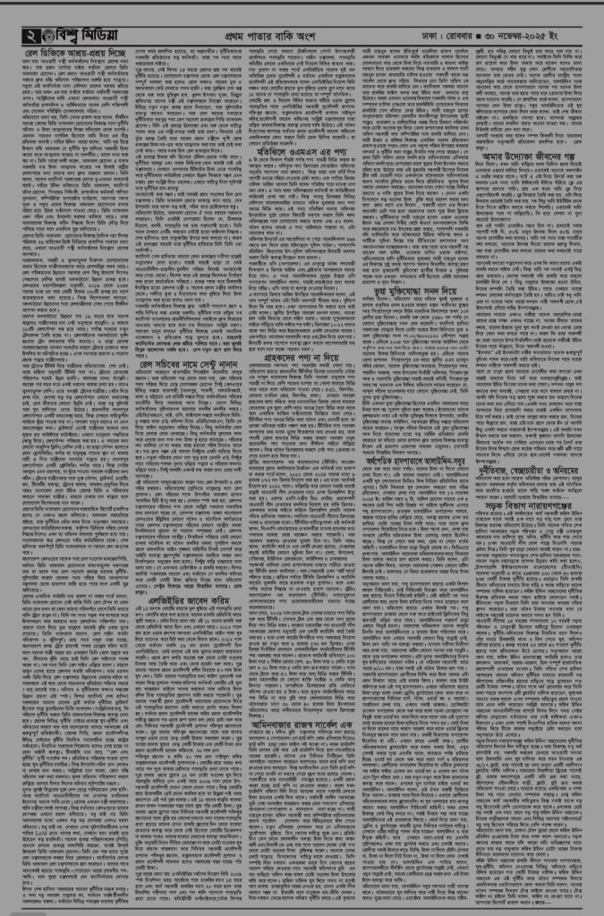 রবিবার, ৩০ নভেম্বর, ২০২৫