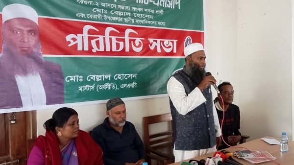 এ সময় তিনি দুর্নীতিমুক্ত আধুনিক ও সমৃদ্ধ বরগুনা-২ আসনের বেতাগী-বামনা ও পাথারঘাটা উপজেলা গঠন এবং জনগণের আর্থ সামাজিক উন্নয়নে কাজ করার অঙ্গিকার ব্যক্ত করেন।