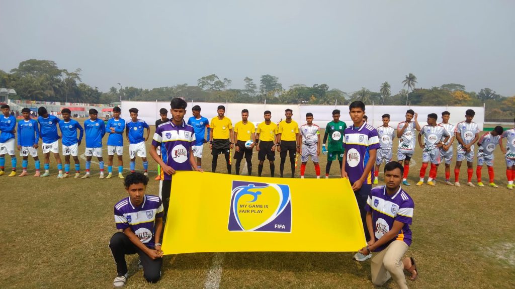 বাংলাদেশ ফুটবল ফেডারেশন আয়োজিত, জেলা প্রশাসন ও ফুটবল এসোসিয়েশন পিরোজপুর এর বাস্তবায়নে গতকাল বৃহস্পতিবার পিরোজপুর জেলা স্টেডিয়ামে অনুর্ধো ১৭ জাতীয় ফুটবল চ্যাম্পিয়ানশীপ ২০২৫ এর সূচনা হয়েছে। প্রধান অতিথি হিসেবে অনুষ্ঠানের শুভ উদ্ধোধন করেন আলাউদ্দিন ভ্ঞূা জনী, অতিরিক্ত জেলা প্রশাসক সার্বিক , পিরোজপুর। বিশেষ অতিথি হিসেবে উপস্থিত ছিলেন বাংলাদেশ ফুটবল ফেডারেশন এর কার্যনির্বাহী কমিটির সদস্য জাকির হোসেন চৌধুরী, পিরোজপুর জেলা ক্রীড়া অফিসার কৌশিক মন্ডল। অনুষ্ঠানে সভাপতিত্ব করেন পিরোজপুর জেলা ফুটবল এসোসিয়েশন এর সদস্য এ্যাডভোকেট রেজাউল করিম মিটুল।